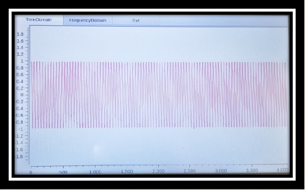 程序运行后,即可在LCD显示屏上看到通道0的时域波形和频域波形。
