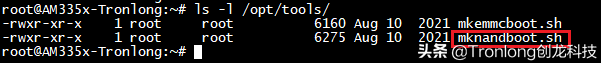 固化Linux系统Linux系统启动卡制作时,已将系统固化的脚本文件mknandboot.sh复制到了Linux系统启动卡文件系统的“/opt/tools/”目录下。