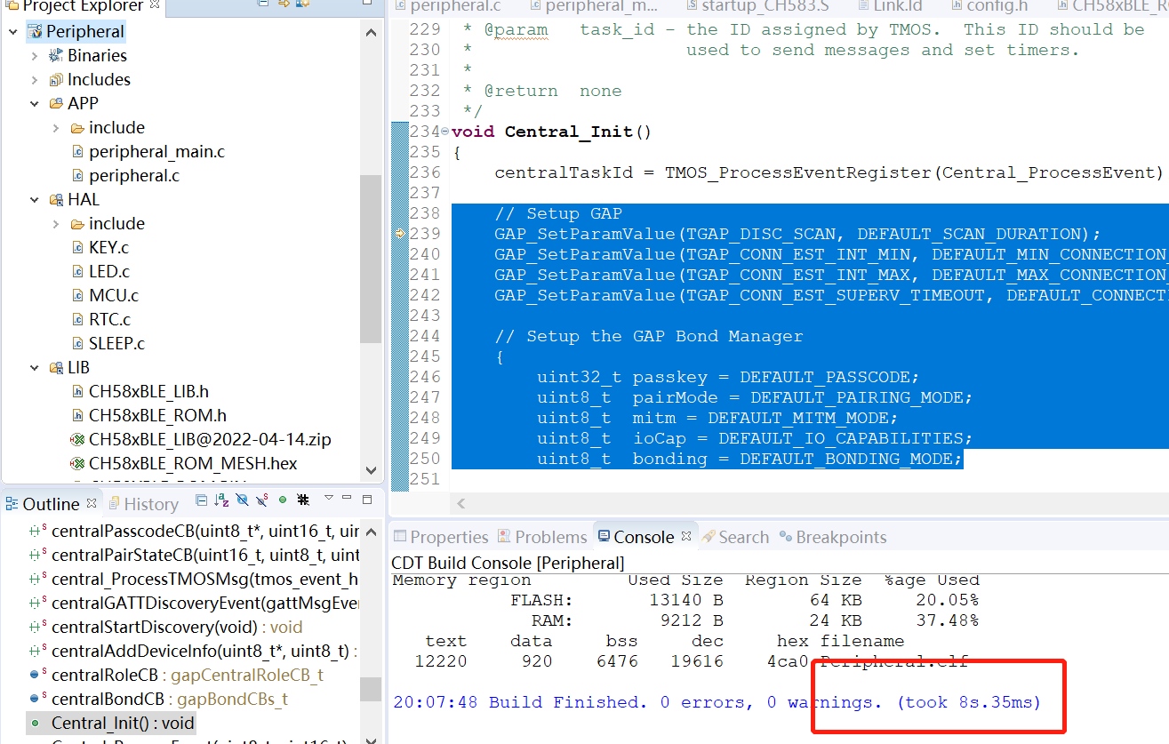 CH582芯片,自己写了个Peripheral的代码,删除了官方例程中的Peripheral服务。