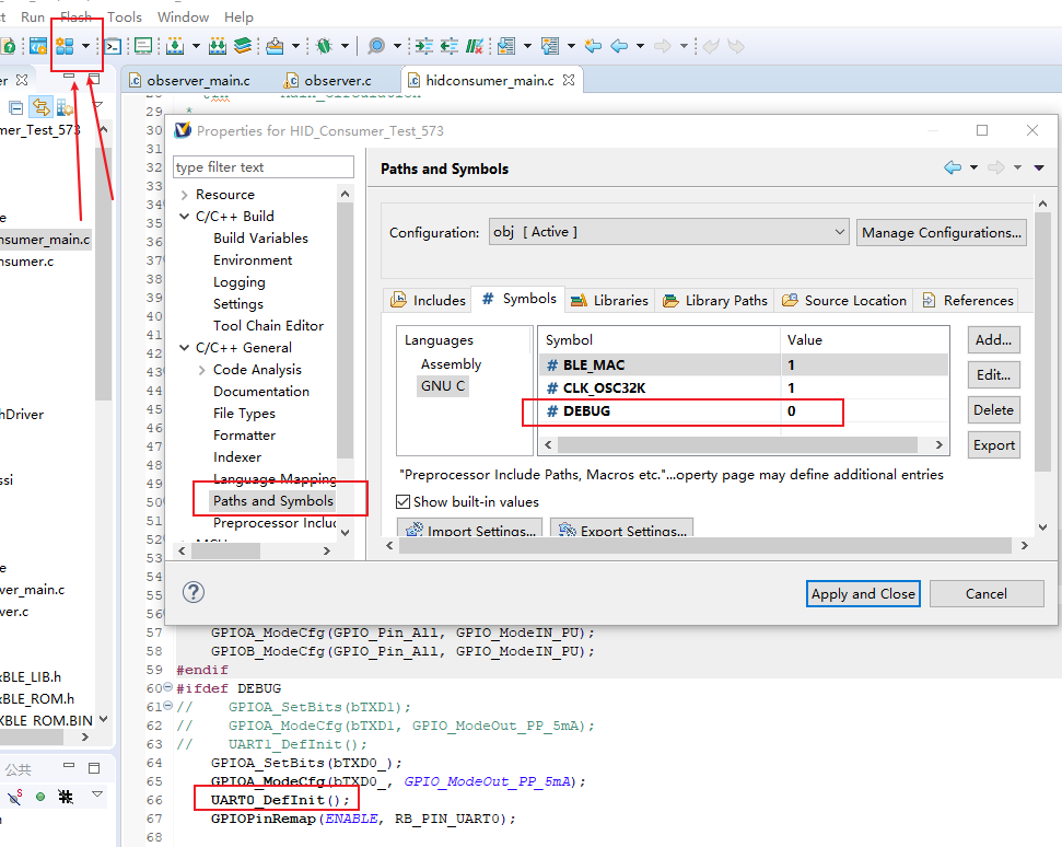 首先将宏定义DEBUG从1改为0或者2,3,其次将串口初始化从串口1的初始化改为串口0或2,3的即可,若串口0或其他串口的文件未加入编译,可右击文件点击参与编译。