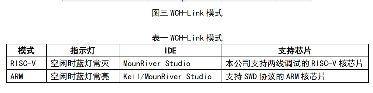 您好,注意检查一下Link 的模式,通过MounRiver升级后针对Keil使用需要切换模式,具体现象如下图。附件为WCH-Link使用说明,里面包含Link模式切换方式以及针对Keil的下载和调试,可以参考一下