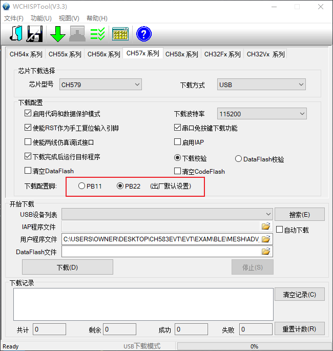 ②ISP工具中有没有修改下载配置脚。若修改到了PB11,请在上电前短接PB11与3V3,上电(通过USB线连接电脑)后短时间内断开PB11与3V3的连接。