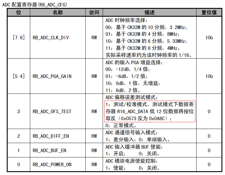 R8_ADC_CFG &= ~RB_ADC_OFS_TEST; // 关闭测试模式