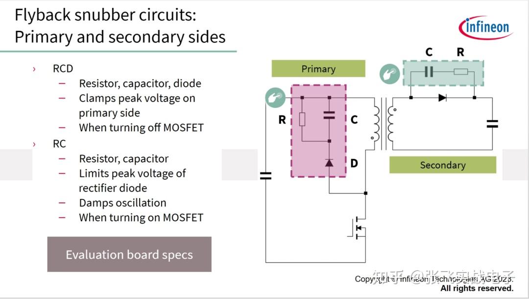 RCD缓冲电路实际是将漏感内存储的电能传输到缓冲电容器(Csn),并通过Rsn耗散电能。
