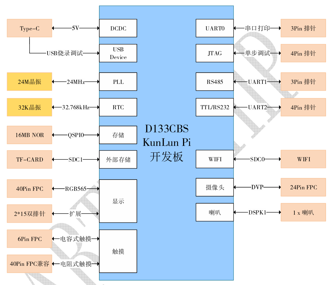 匠芯创D133CBS RISC-V KunLun Pi V1.0 是一款基于D13x芯片的人机交互应用开发板,配备4.3寸LCD显示屏以及电容触摸屏,支持DVP摄像头。开发板集成了USB烧录、TF-Card升级烧录、JTAG、串口打印等调试接口,方便调试开发。开发板集成16MB NOR FLASH并可兼容NAND,同时引出RS485、RS232/TTL、喇叭、SDIO WIFI 等功能,方便用户快速进行技术预研与产品开发,满足用户对不同人机交互场景的开发需求。