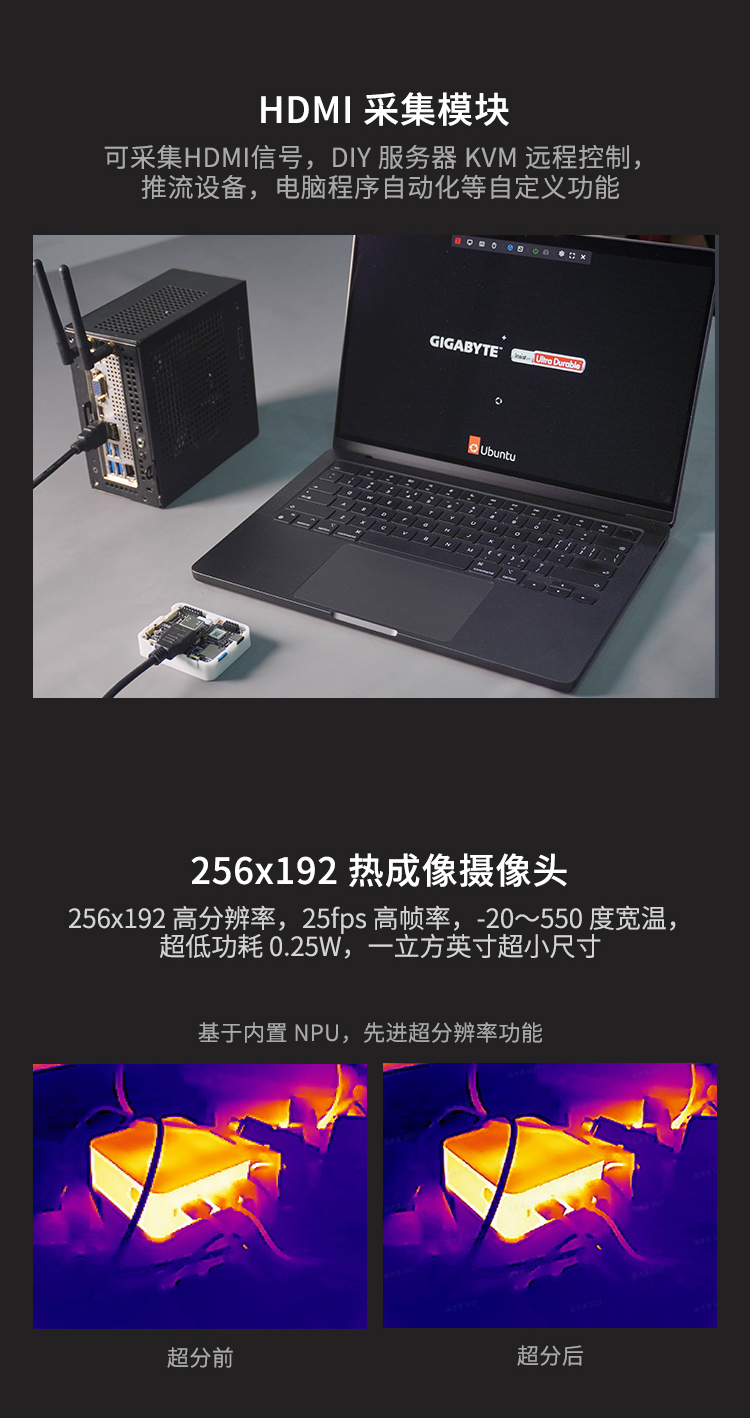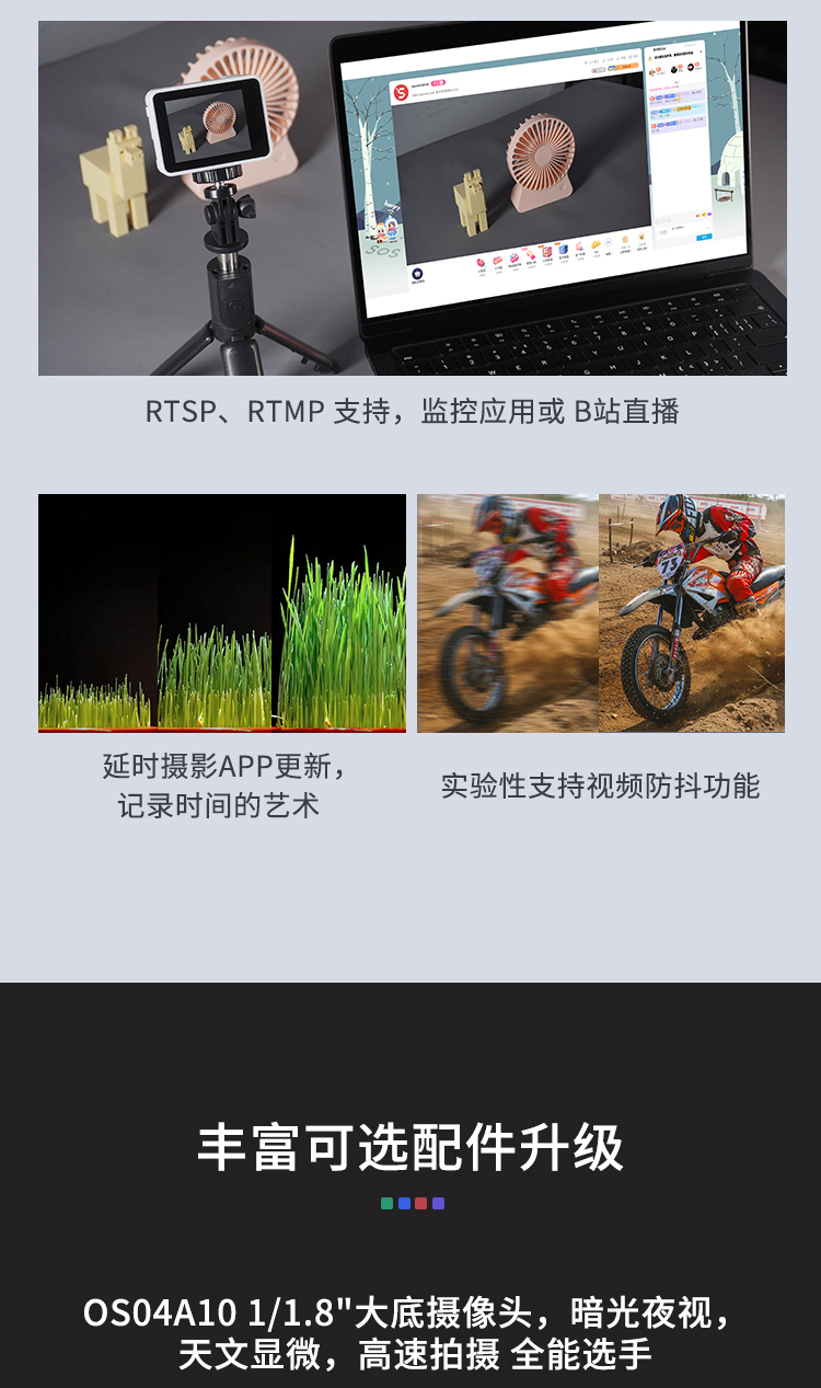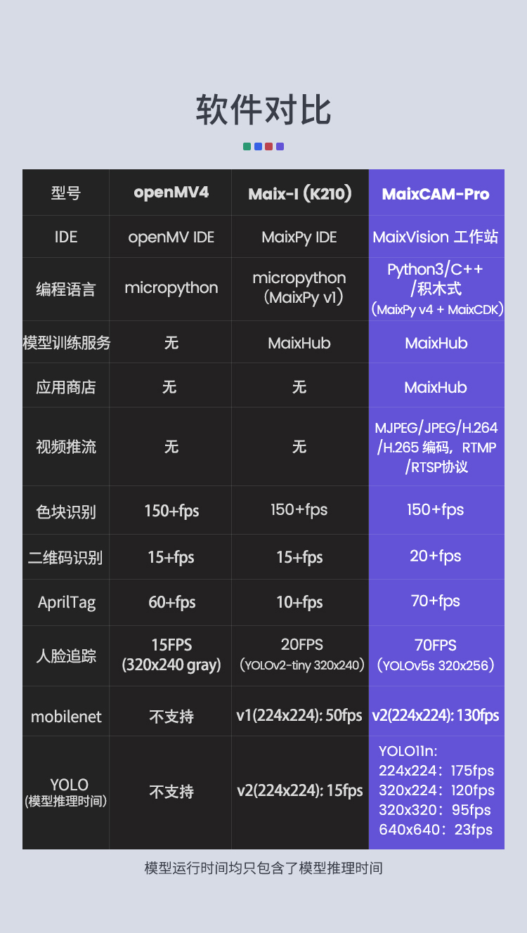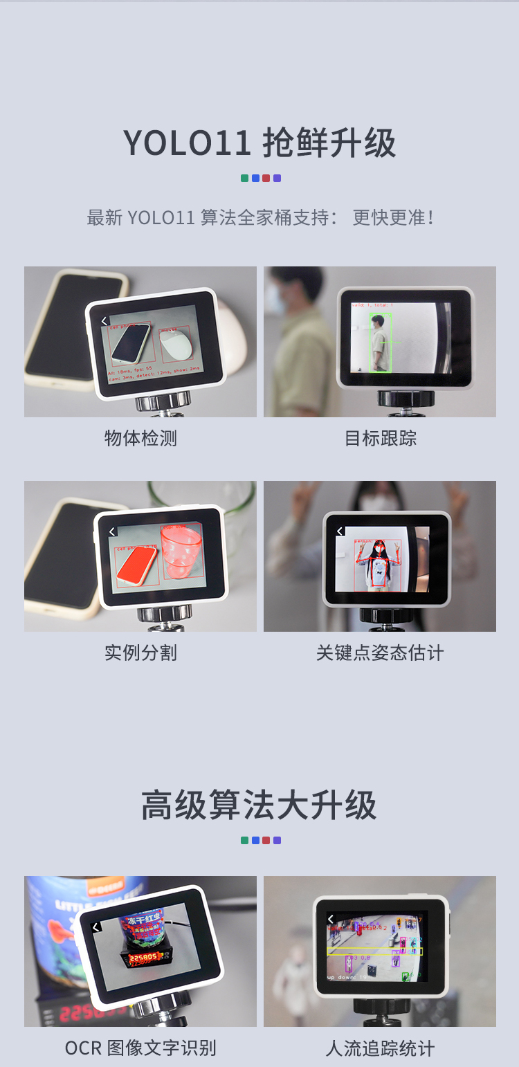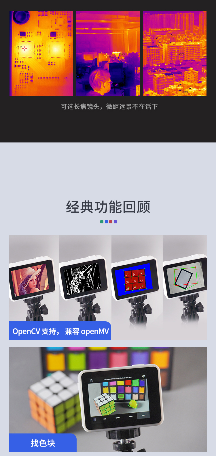 基于SG2002的RISCV AI视觉摄像头模块,可视化触摸屏UI操作,内置十余款APP,支持MaixPy+MaixCDK开发环境,支持自研MaixVision 专业视觉IDE,支持MaixHub 在线训练平台。SoC: SG2002(1GHz C906+700MHz C906 + 256MB DDR + 1TOPS NPU),2.3寸552x368 MIPI触摸屏,标配 1/3” GC4653 4MP摄像头,板载WIFI6+BT5模块,6轴 IMU,1W小喇叭,RTC时钟,对外引出两路舵机接口,PMOD接口,Grove接口。